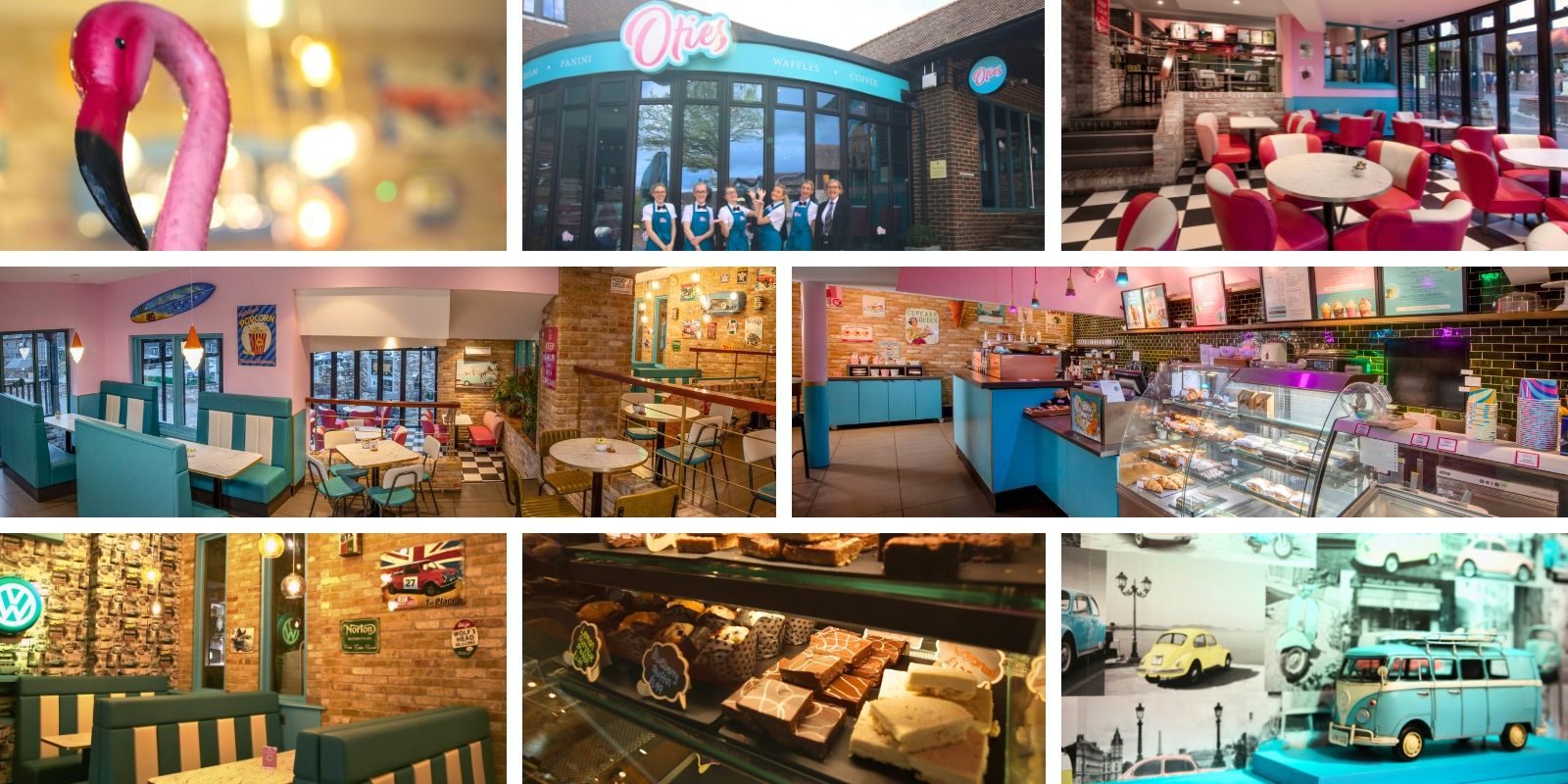 The home of delicious pancakes, waffles and treats, Oties was created as the perfect spot for all guests and visitors of all ages to enjoy delicious food in a unique setting. Just take a look around and you’ll see pink flamingos, VW camper van decor, vintage posters and ice cream cone lighting, paired with retro booths, vibrant desserts and a great atmosphere.